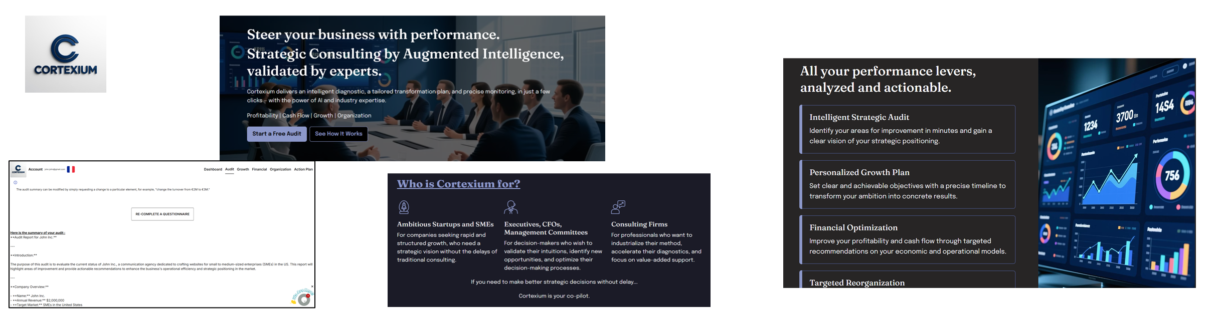 Cortexium performs a complete strategic audit in just a few minutes, using AI to identify growth opportunities and performance bottlenecks.