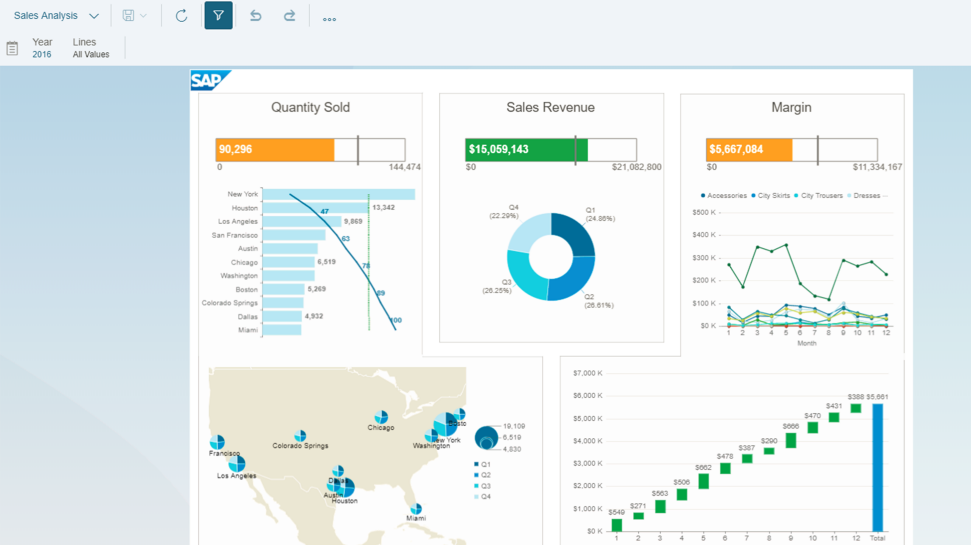 SAP BusinessObjects BI enables users to create dynamic and interactive dashboards that enhance data visualization and engagement. This feature offers: