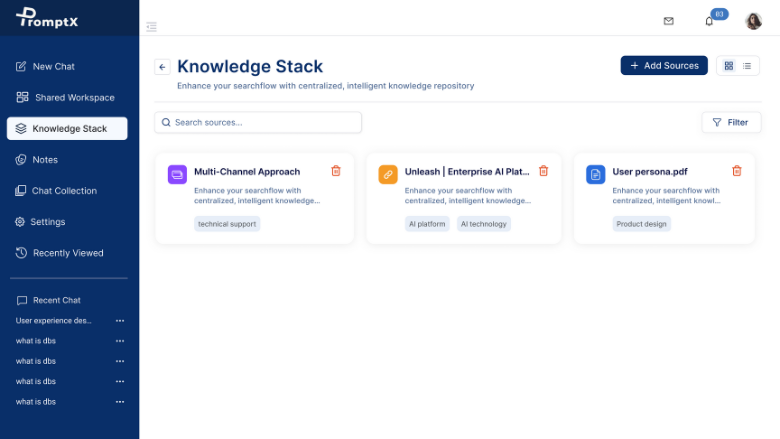 PromptX acts as a centralized, intelligent assistant that breaks down silos, eliminates irrelevant or outdated results, and enables real-time access to critical information. Through its AI-driven approach, it accelerates decision-making, improves operational efficiency and promotes cross-functional collaboration.