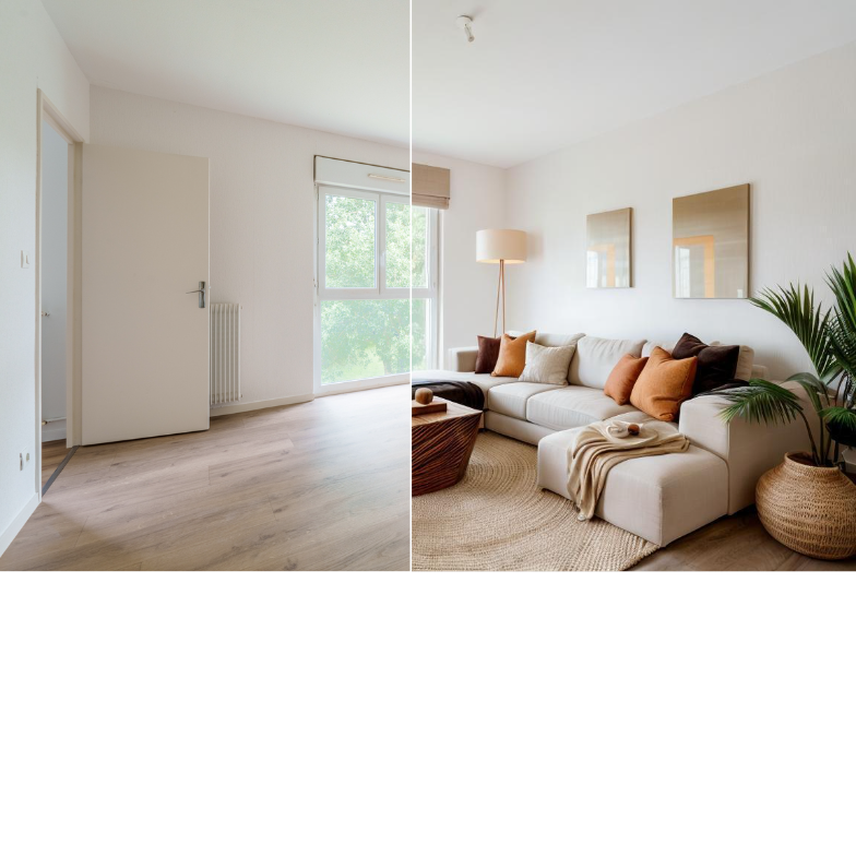 Transforming empty, cold rooms into stylish and inviting spaces is essential for attracting buyers. Flaash's home staging capabilities allow you to furnish properties in line with current trends effortlessly.