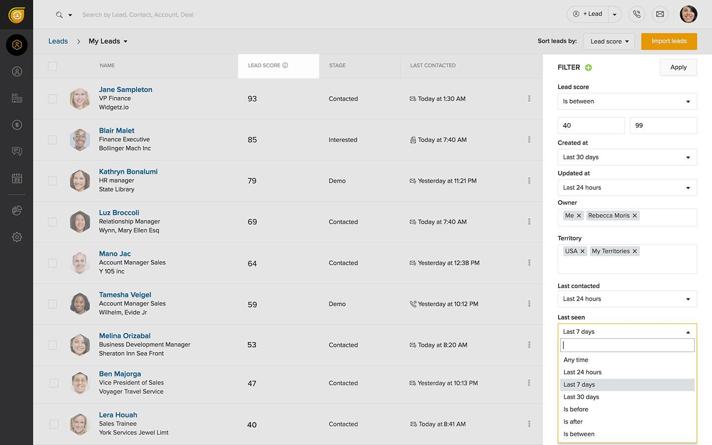 Freshsales is web- and mobile-accessible cloud software. Collect and track your connections and leads in one spot. It also tracks email and call campaigns, including open and click-through rates, and schedules and logs calls.