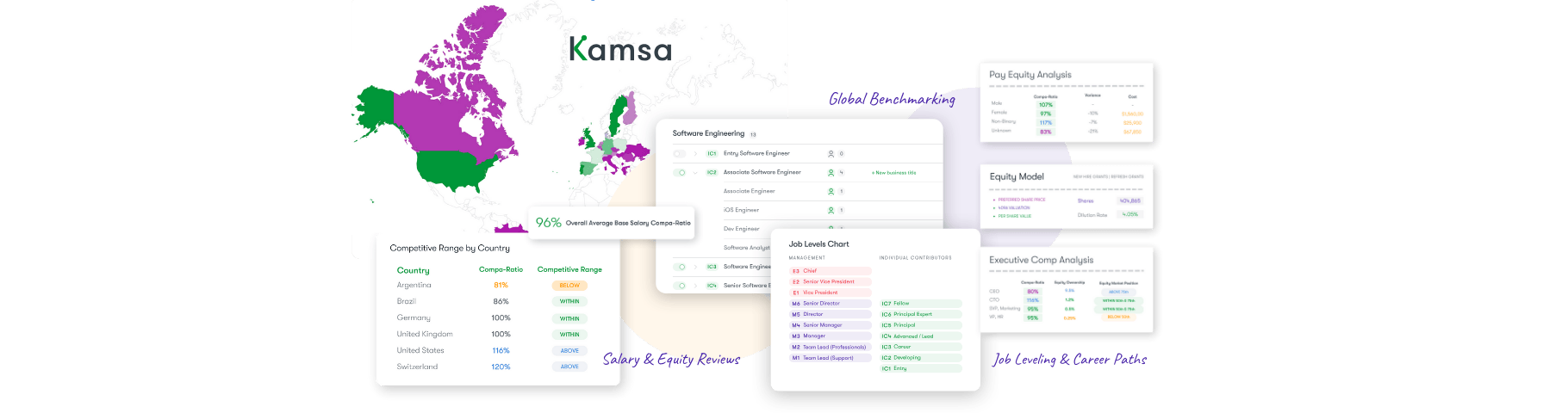 Kamsa is a global compensation software, built by compensation experts, making it painless to pay employees fairly. Using proprietary global market data across 60+ countries, Kamsa’s hybrid approach (technology + data + consulting) to compensation helps companies define their compensation philosophy, job architecture and compensation ranges, and benchmark employees' pay against the latest market trends.