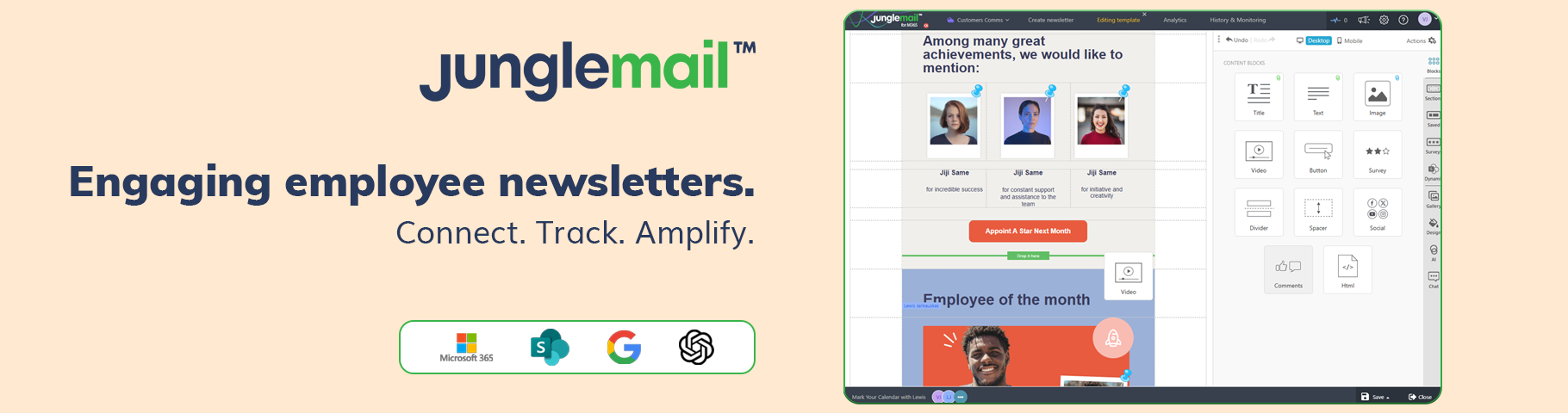 JungleMail simplifies and enhances internal communication by enabling organizations to create engaging newsletters tailored to employees, partners, and students.