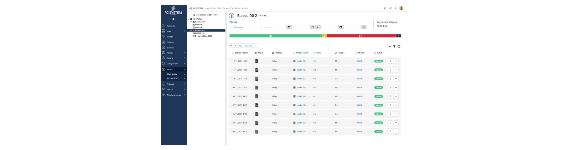 RG Backup Files & Data is a 100% French data backup and recovery solution designed for MSPs and IT Departments. Integrated into the RG System Suite, it enables you to effectively protect your customers' files, databases and critical environments, while keeping your costs under control.