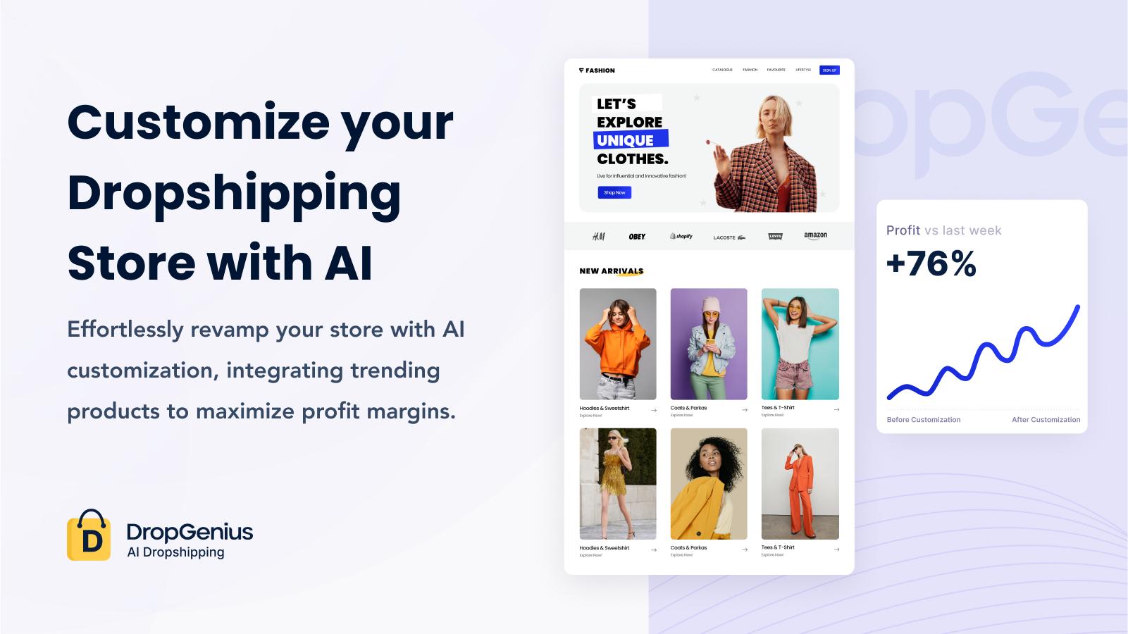 DropGenius stands out in the e-commerce platform space with its cutting-edge AI technology. This tool enables you to launch a profitable dropshipping store in mere seconds. It automates the customization process and ensures your store is stocked with trending products.