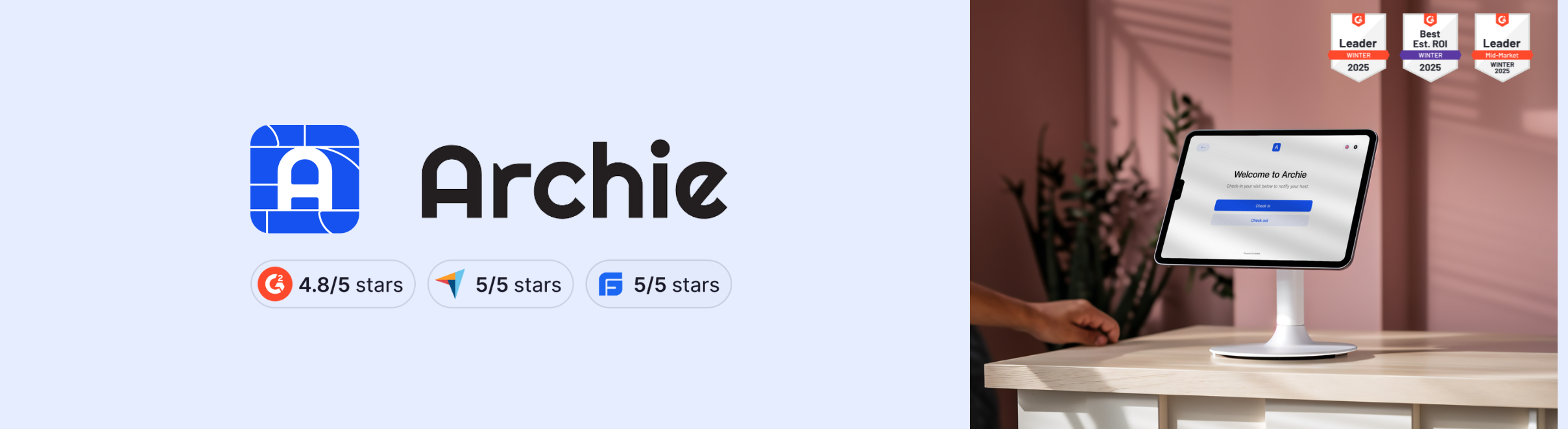 Archie offers a quick and easy check-in process, allowing visitors to register in just a few clicks. It automatically sends notifications to hosts as soon as visitors arrive. Additionally, it integrates features such as room and desk booking, as well as access management, ensuring a smooth experience for everyone. All advanced features and software integrations are included in our main plan, including Slack, Teams, Outlook and more. Discover the Archie difference today and get the system up and running in no time.